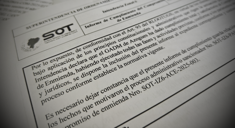 La Superintendencia de Ordenamiento Territorial, Uso y Gestión del Suelo (SOT), en el marco de sus atribuciones legales establecidas en la Ley Orgánica de Ordenamiento Territorial, Uso y Gestión de Suelo (LOOTUGS), suscribió un acta de remediación y verificó su cumplimiento por parte del Gobierno Autónomo Descentralizado