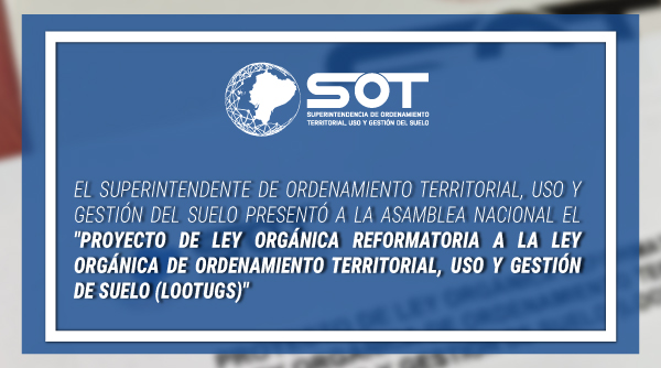 Con el propósito de fortalecer el marco normativo que rige la planificación y gestión del suelo en el país, el Superintendente de Ordenamiento Territorial, Mag. Pablo Iglesias Paladines, presentó a la Comisión de Gobiernos Autónomos de la Asamblea Nacional, el “Proyecto de Ley Orgánica Reformatoria a la