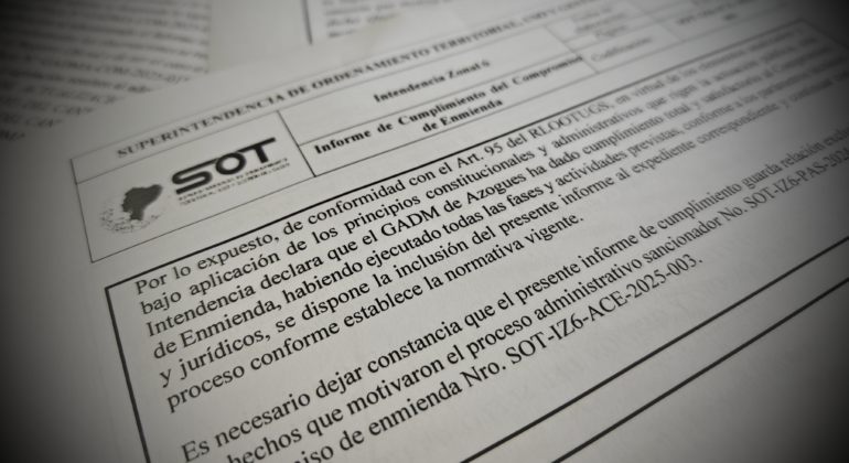 La Superintendencia de Ordenamiento Territorial, Uso y Gestión del Suelo (SOT), en el marco de sus atribuciones legales establecidas en la Ley Orgánica de Ordenamiento Territorial, Uso y Gestión de Suelo (LOOTUGS), suscribió un acta de remediación y verificó su cumplimiento por parte del Gobierno Autónomo Descentralizado